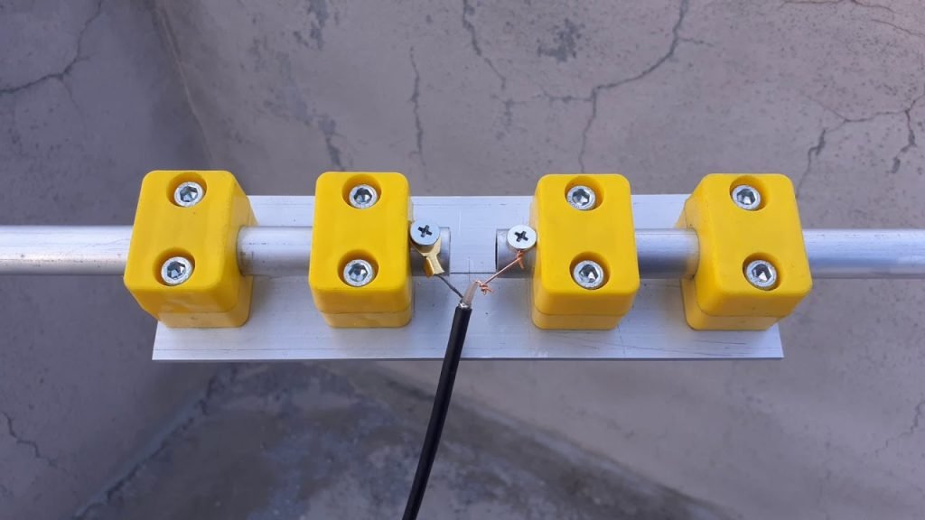 Ardından reflektör tutucu parçadaki boşluklardan yararlanarak kablonun canlı ucunu alimünyum çubuğun bir ucuna, kaplamayı ise diğer ucuna vida ve lehim yardımıyla tutturuyoruz, ardından kablonun diğer ucuna da telsizinize uygun bir konnektör bağlayarak anteni kullanmaya başlayabilirsiniz.